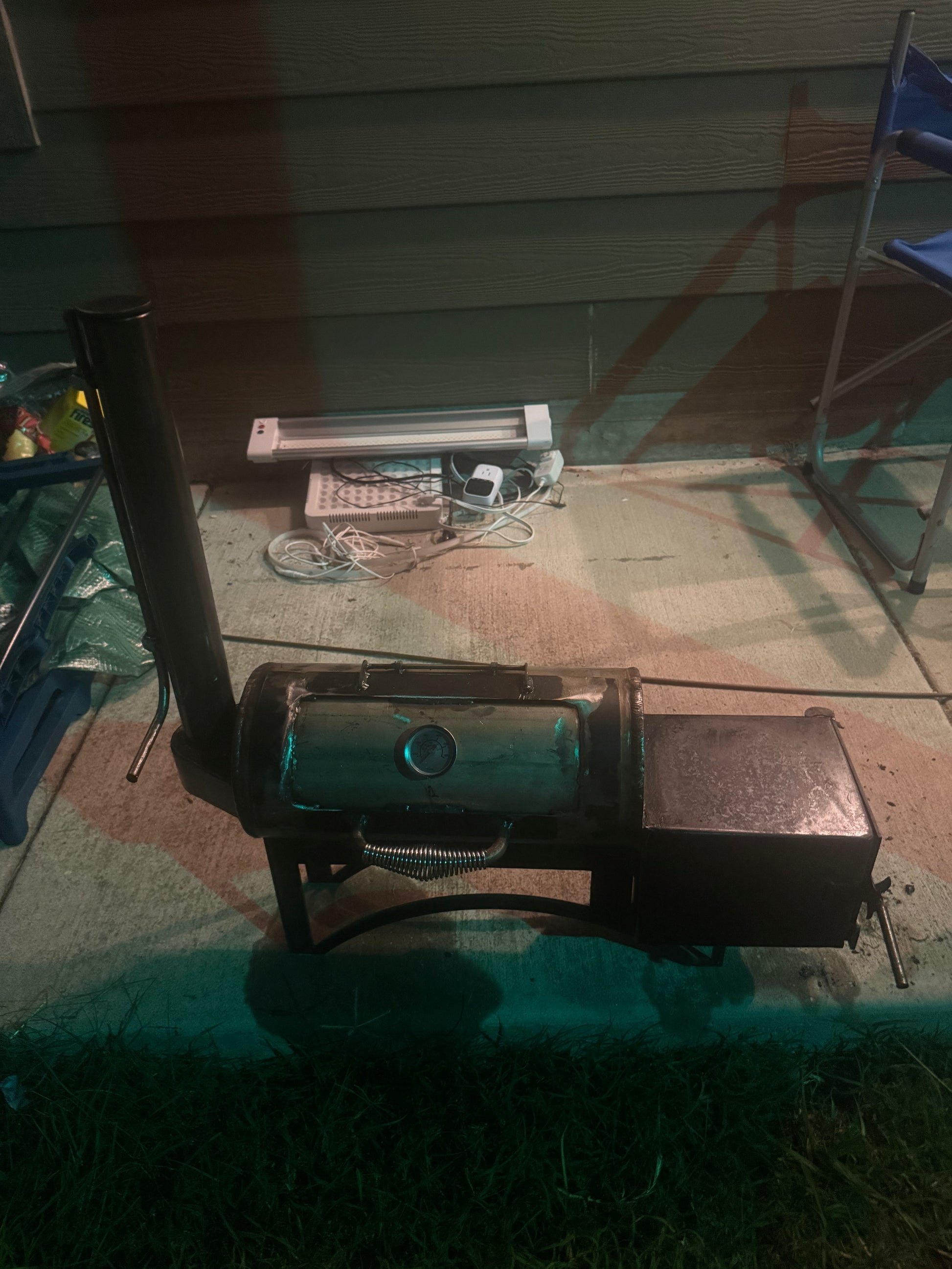 - Smoke stack: Welded steel for clean draw and great airflow